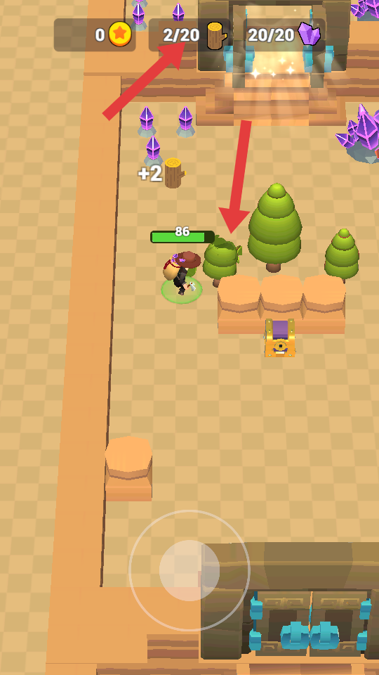 2、繼續(xù)探索場(chǎng)景,收集木樁,界面上方會(huì)實(shí)時(shí)更新木樁的收集進(jìn)度,同時(shí)留意周圍的寶箱等,可能有額外收獲。