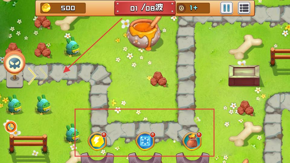 3、進(jìn)入?yún)擦株P(guān)卡后看到下方有加速劑、冷凍劑等道具,根據(jù)敵人的情況,點(diǎn)擊對應(yīng)的道具,將其運(yùn)用到關(guān)卡的路徑防御中,抵御敵人的進(jìn)攻。