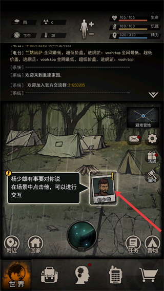 3、在游戲場景里可與楊少雄等角色互動,點擊他可進行交互,獲取游戲信息或任務(wù)。