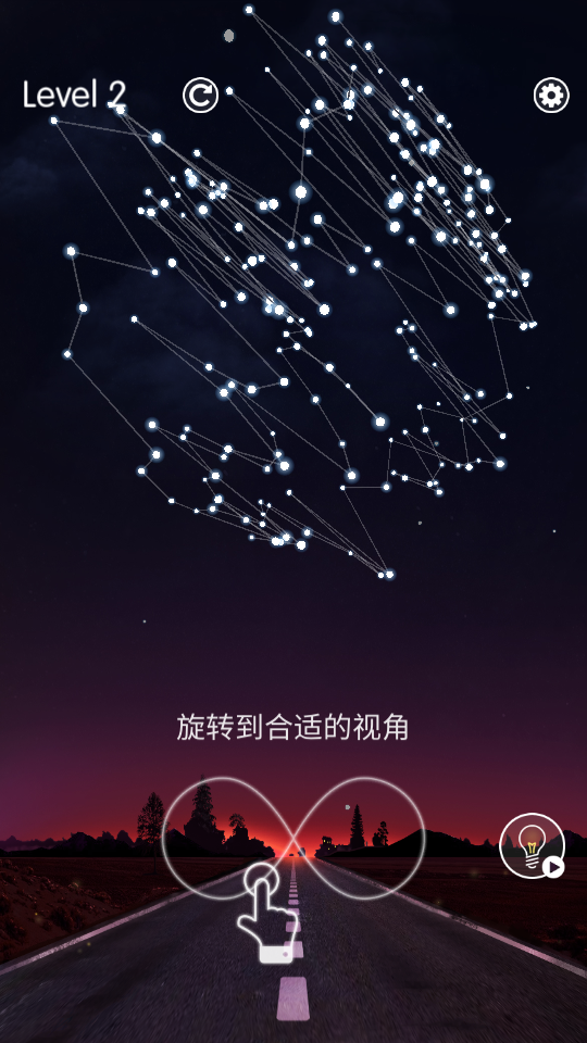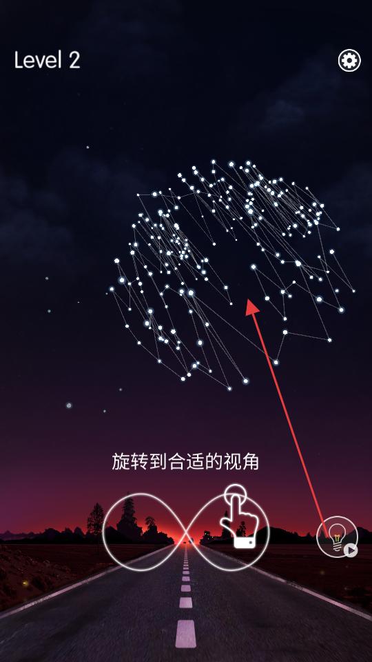 4、持續(xù)旋轉(zhuǎn)第二關(guān)的星空?qǐng)D案視角,仔細(xì)觀察光點(diǎn)和線條的連接方式,當(dāng)視角調(diào)整到合適角度時(shí),圖案會(huì)逐漸顯現(xiàn)出明確的形狀,可繼續(xù)挑戰(zhàn)后續(xù)關(guān)卡。