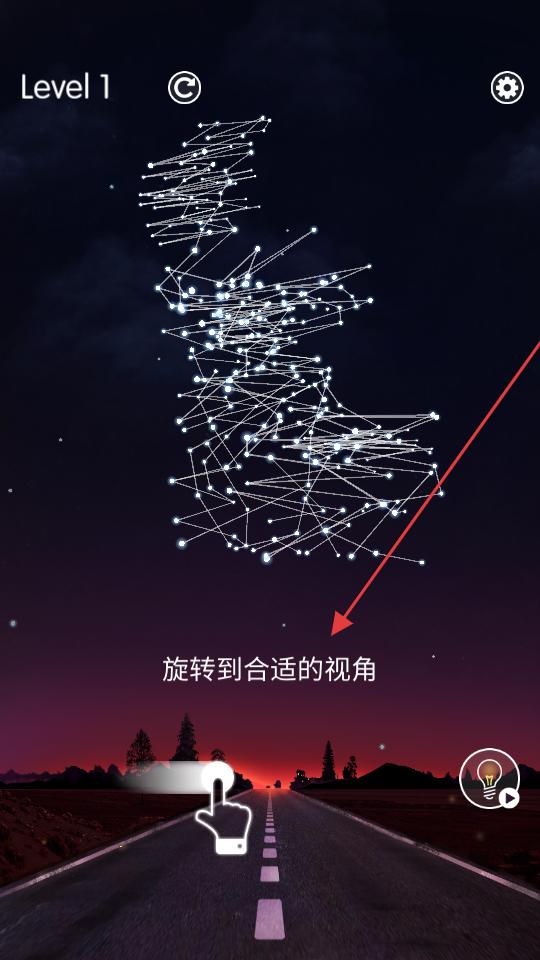 1、進(jìn)入第一關(guān)后看到由光點(diǎn)和線條組成的復(fù)雜圖案,按照提示用手指在屏幕下方的控制區(qū)域滑動(dòng),旋轉(zhuǎn)圖案視角,直到圖案呈現(xiàn)出明確的輪廓。