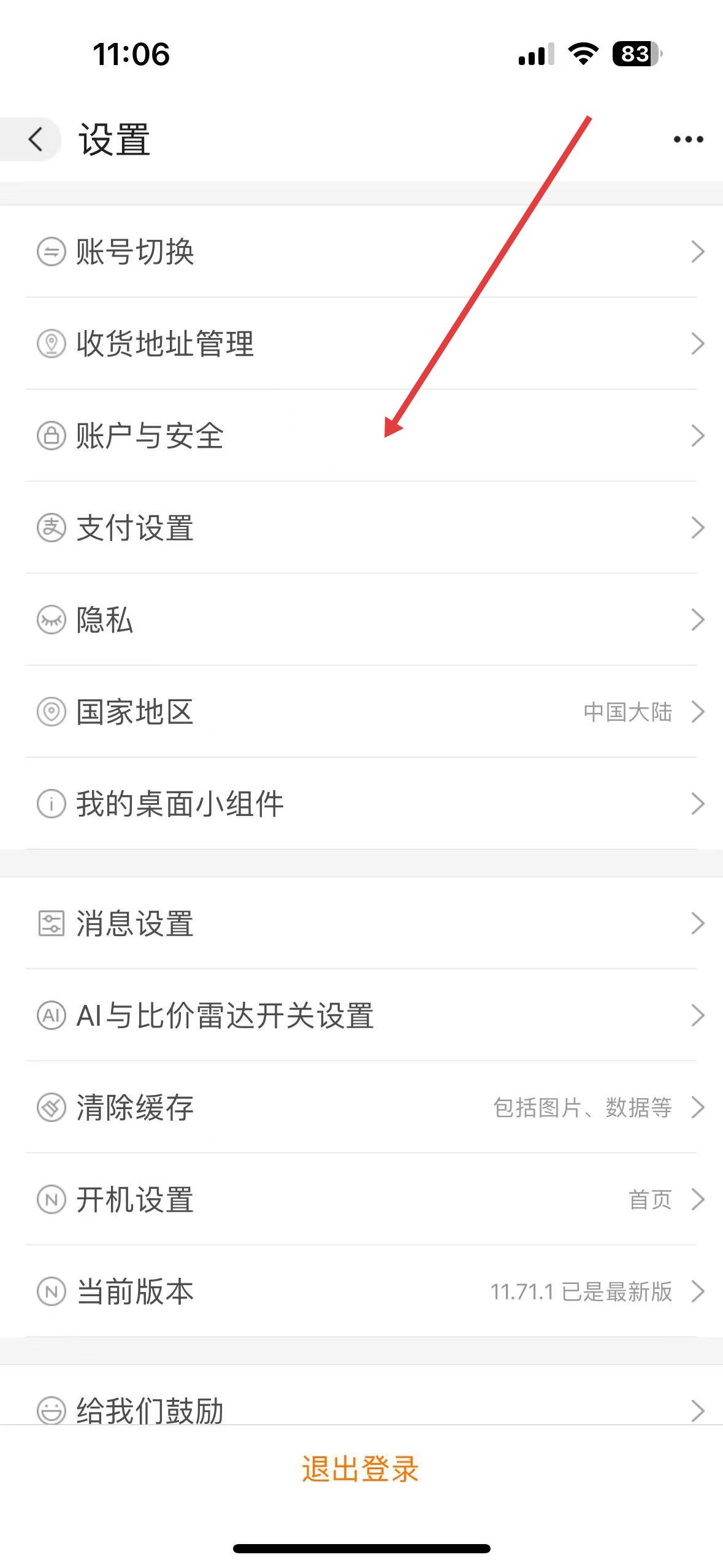 1、設(shè)置頁(yè)中,賬戶與安全是管理賬號(hào)安全的入口,點(diǎn)擊可進(jìn)入修改綁定信息、注銷(xiāo)賬號(hào)等界面。