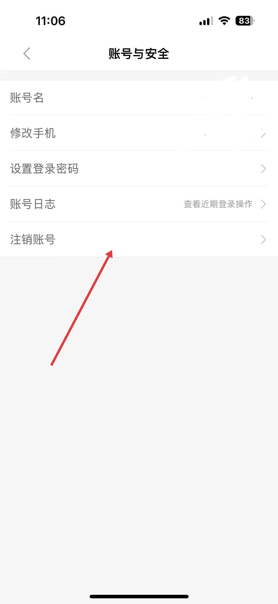 2、賬號(hào)與安全頁(yè)面,可進(jìn)行修改手機(jī)、設(shè)置密碼等操作,底部有注銷(xiāo)賬號(hào)選項(xiàng),開(kāi)啟銷(xiāo)戶流程。