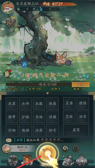 2、遠古山海世界讓你一見傾心,選擇洞府佛系修煉。