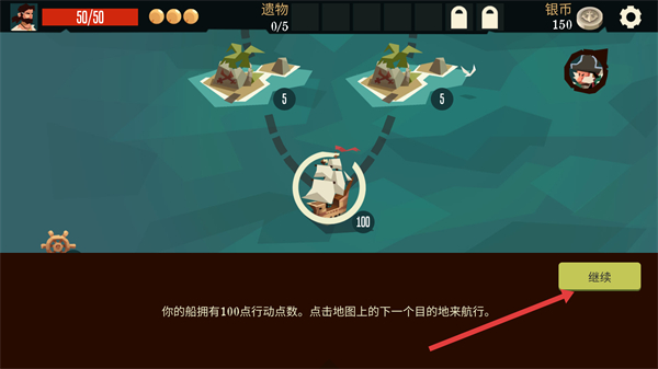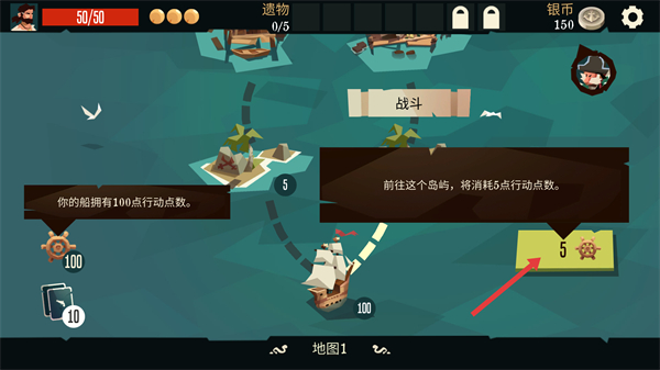 2、前往島嶼將消耗行動點數(shù),不同島嶼消耗點數(shù)不同,選擇島嶼航行,開啟島嶼上的冒險和戰(zhàn)斗。