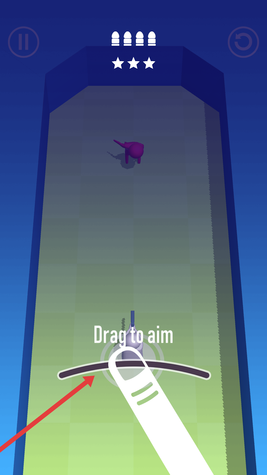 2、按照拖動(dòng)瞄準(zhǔn)提示,拖動(dòng)瞄準(zhǔn)紫色目標(biāo),調(diào)整射擊角度,為精準(zhǔn)射擊做準(zhǔn)備。