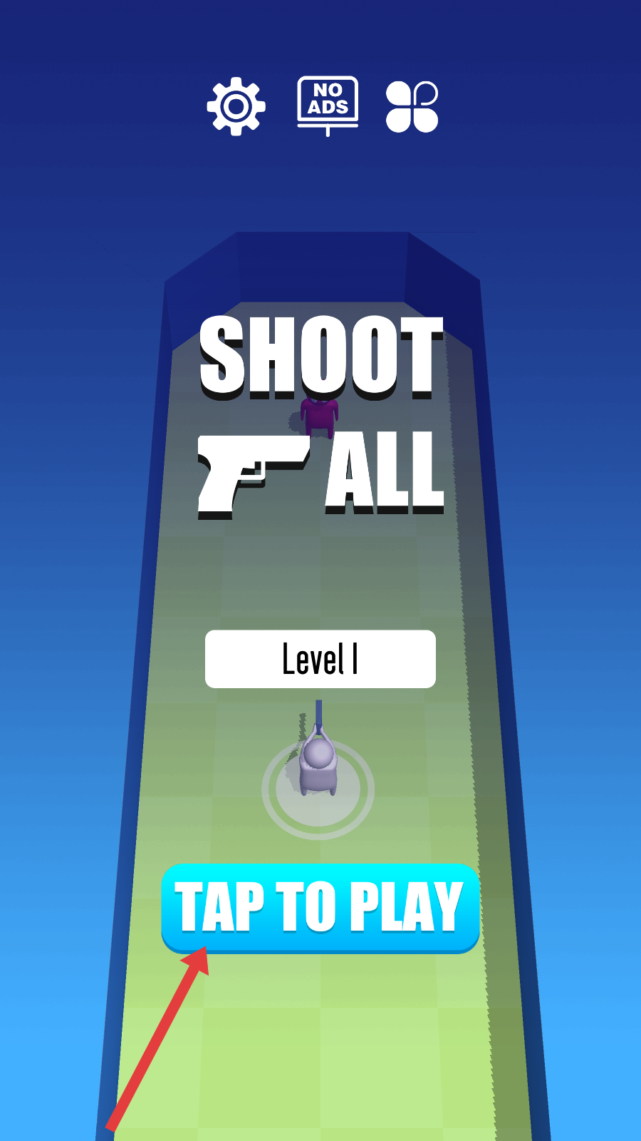 1、在游戲初始界面點(diǎn)擊開始,進(jìn)入第一關(guān),開啟射擊挑戰(zhàn),準(zhǔn)備射擊前方目標(biāo)人物。