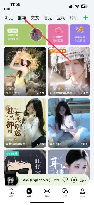 3、完成實名認證等開播準備后,也可回到首頁,點擊推薦,能看到更多不同類型的主播推薦內(nèi)容。