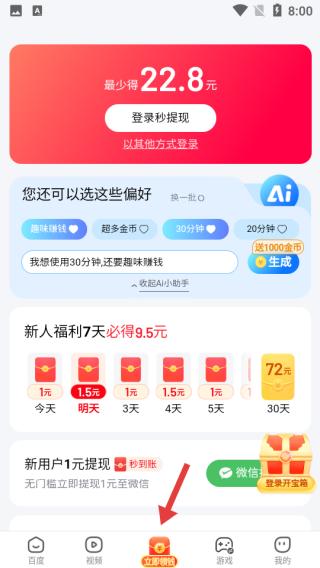 2、點擊福利界面呈現(xiàn)新人福利,登錄秒提現(xiàn),還有偏好選擇及AI助手,助力輕松獲取收益,福利豐富誘人。