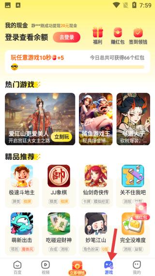 3、點擊游戲頁面展示熱門與精品推薦游戲,如愛江山更愛美人等,玩游戲還能獲紅包,增添娛樂趣味。