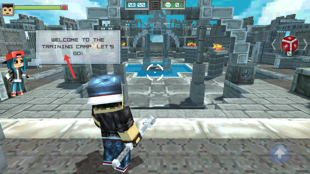 2、進入訓(xùn)練營,看到工色箭頭指示的提示,這是新手引導(dǎo)環(huán)節(jié),跟隨提示熟悉游戲場景和操作,為后續(xù)游戲做準備。