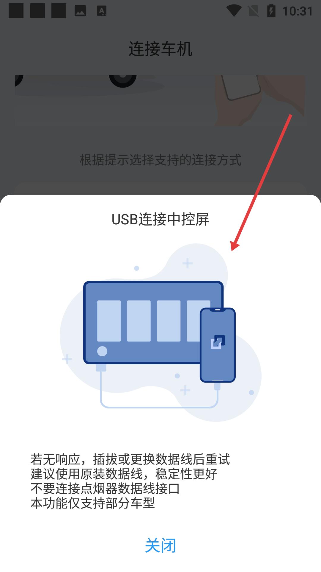 1、連接車機有多種方式,可選擇USB有線連接,使用USB線連接手機和車機,若連接無反應(yīng)可查看相關(guān)提示解決。