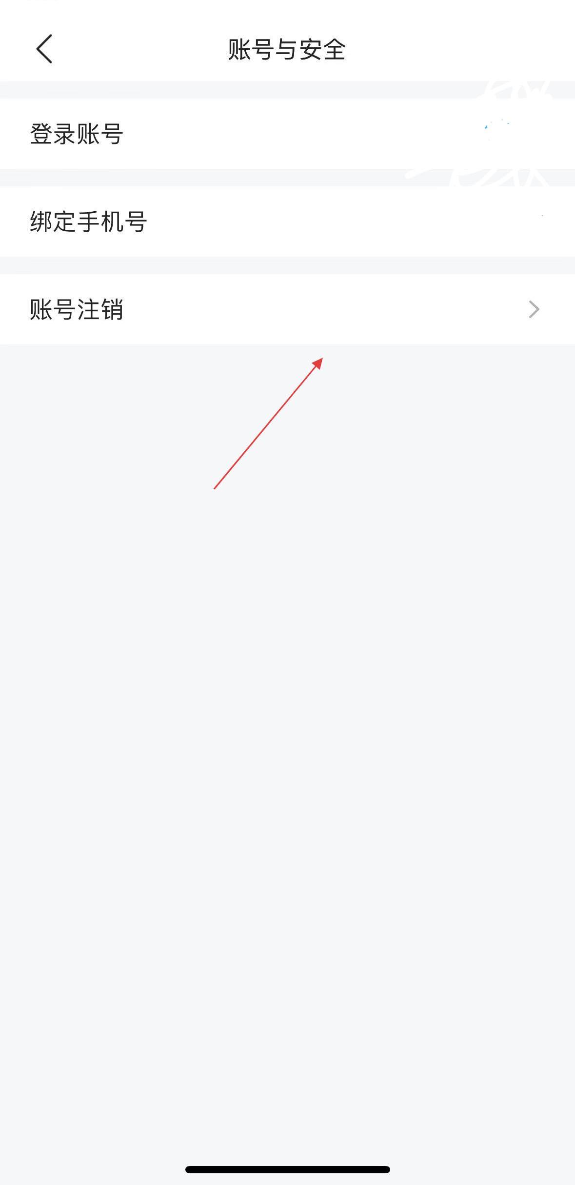 3、賬號與安全界面后,能看到登錄賬號、綁定手機號、賬號注銷這些選項,若有注銷賬號需求,點擊賬號注銷選項。