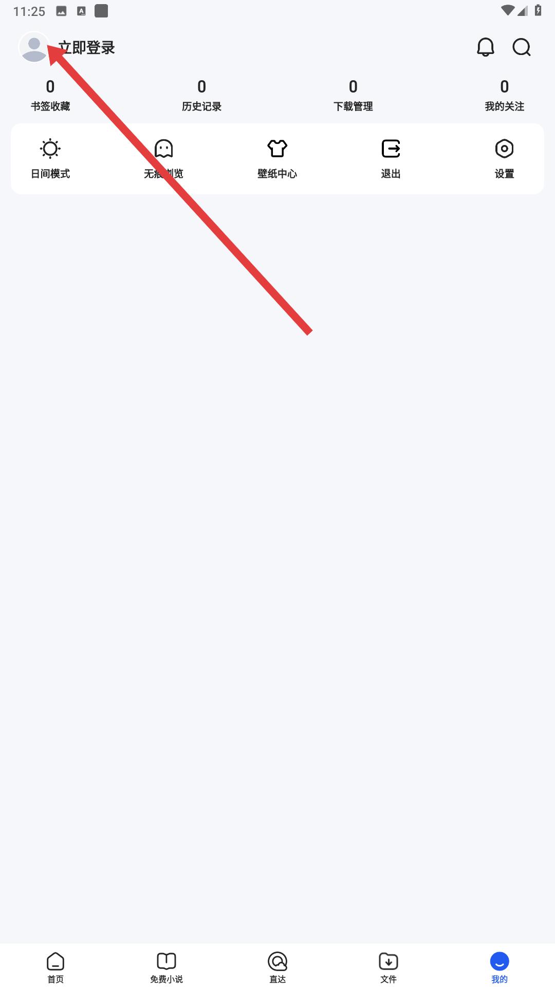 2、個人頁面,能看到書簽收藏、歷史記錄等功能,點擊立即登錄區(qū)域,彈出登錄選項窗口。