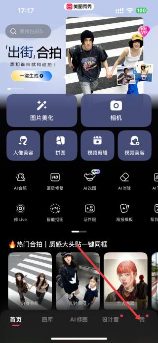 1、打開(kāi)美圖秀秀,進(jìn)入首頁(yè),能看到圖片美化、相機(jī)等功能選項(xiàng),還有熱門(mén)推薦,點(diǎn)擊我。