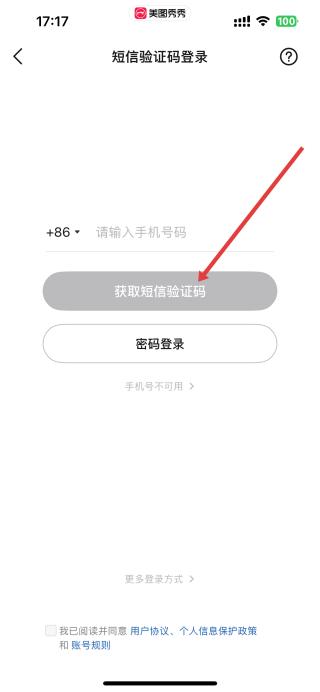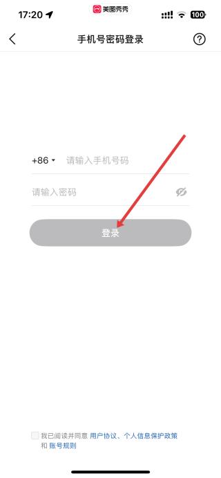 4、若選擇密碼登錄,進(jìn)入手機(jī)號(hào)密碼登錄頁(yè)面,輸入手機(jī)號(hào)碼和密碼,勾選同意相關(guān)協(xié)議后,點(diǎn)擊登錄,即可使用美圖秀秀的相關(guān)功能。