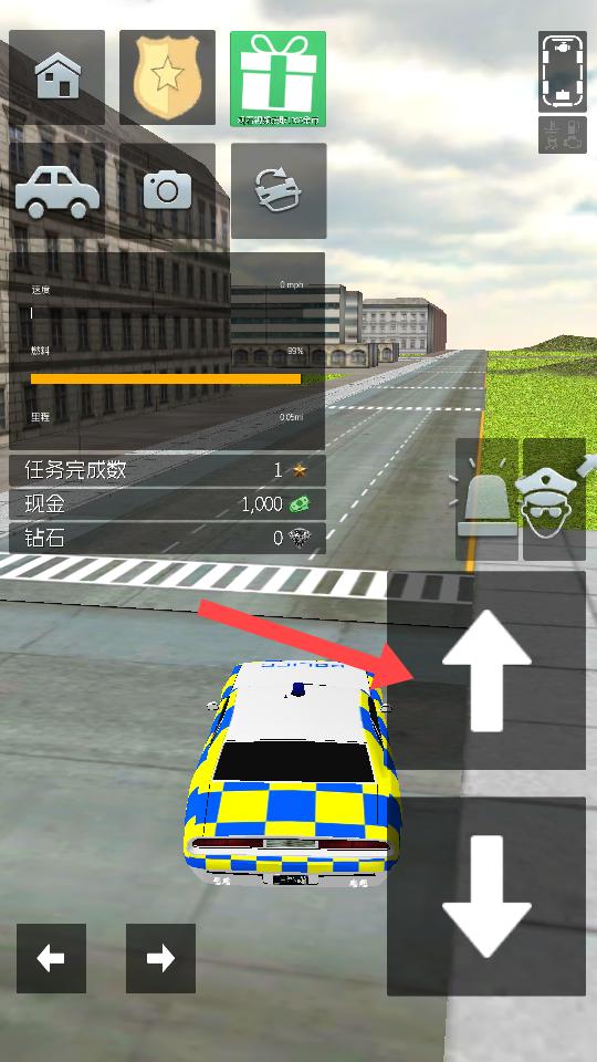 3、駕駛時(shí),用左右鍵控方向,上下鍵控車(chē)速,按任務(wù)指引在城市道路行駛,完成巡警目標(biāo)。