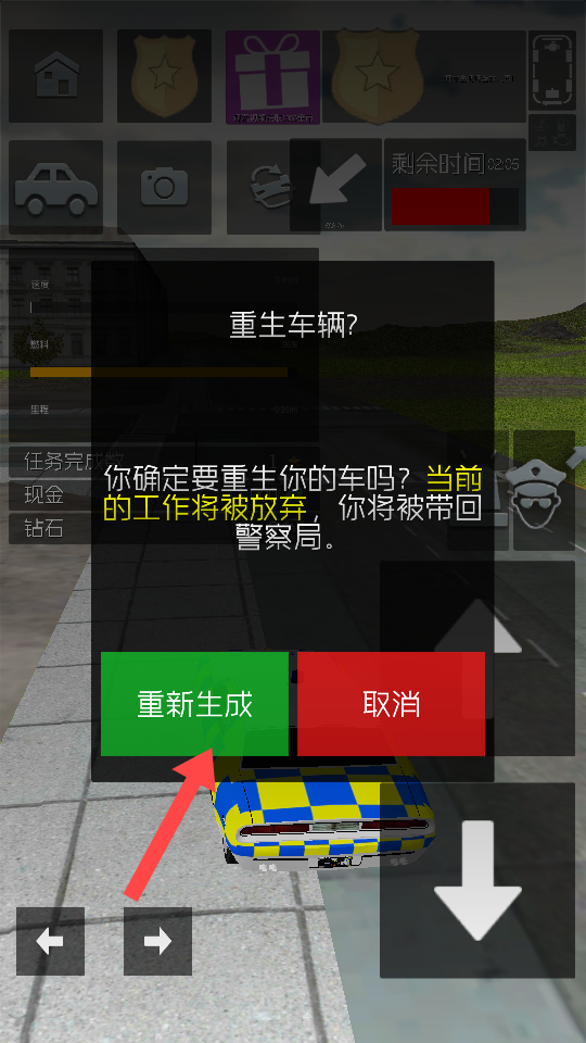 4、遇車(chē)輛故障或被困,可選擇重新生成,放棄當(dāng)前任務(wù)回警局,重置車(chē)輛繼續(xù)游戲。