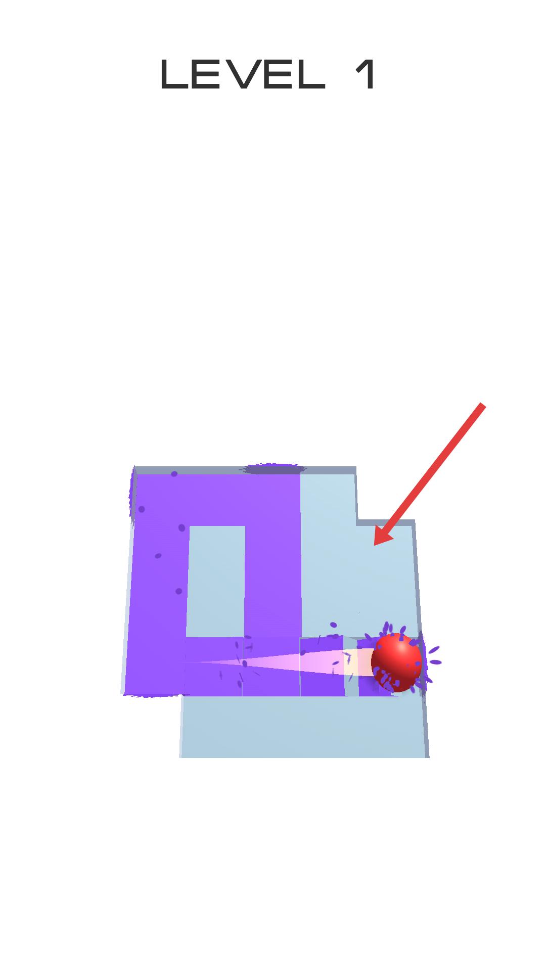 1、第一關(guān)紅色小球處于空白區(qū)域,需操控小球移動,目標(biāo)是讓小球接涂色占滿空白區(qū)域,開始推進(jìn)涂色進(jìn)程。
