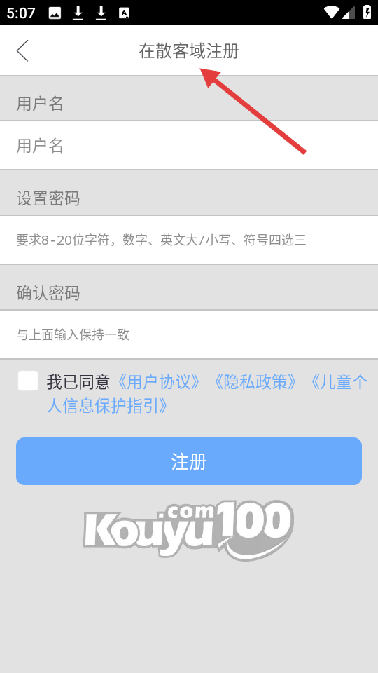 4、散客域注冊(cè)頁(yè)面,明確用戶名與密碼設(shè)置規(guī)則,密碼需8、20位且滿足特定組合要求,勾選協(xié)議后可進(jìn)行注冊(cè)。