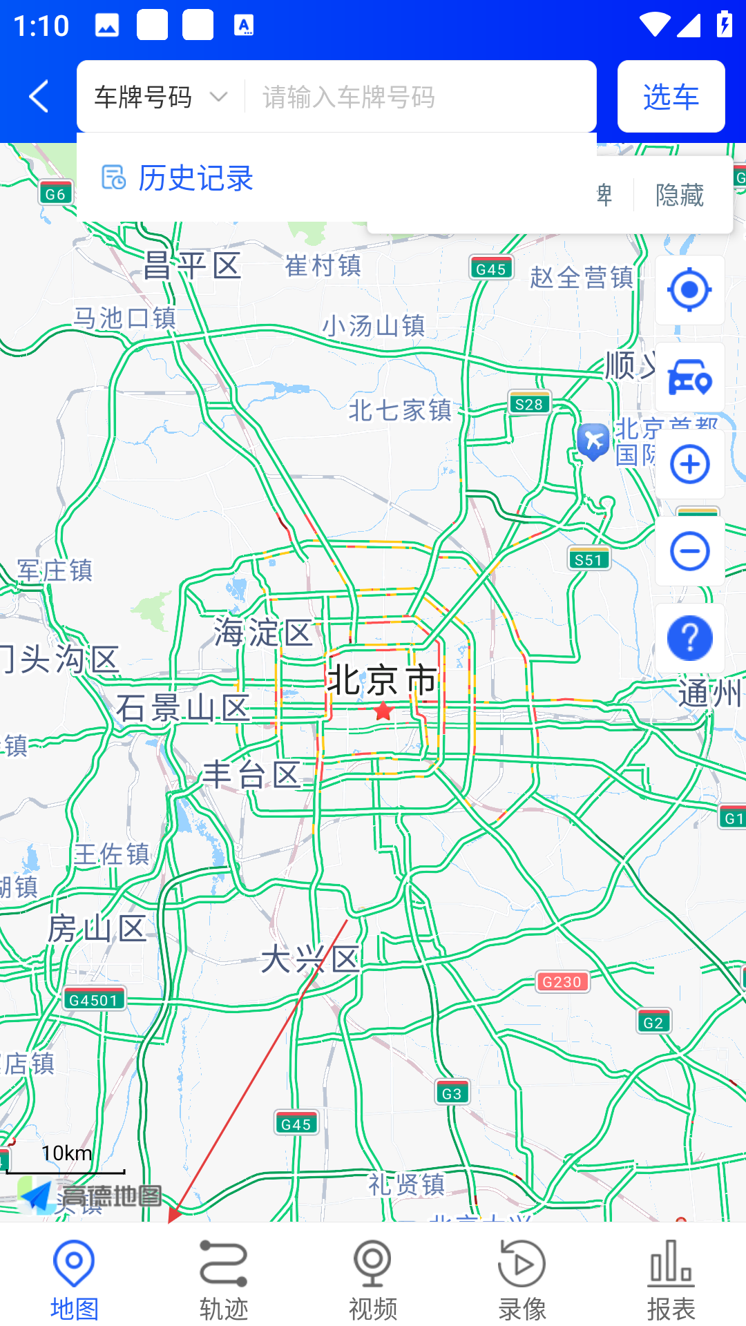 1、地圖頁面,用戶可通過輸入車牌號(hào)碼快速定位車輛,地圖上清晰展示了車輛所在位置及周邊路況,同時(shí)還提供軌跡、視頻等功能入口