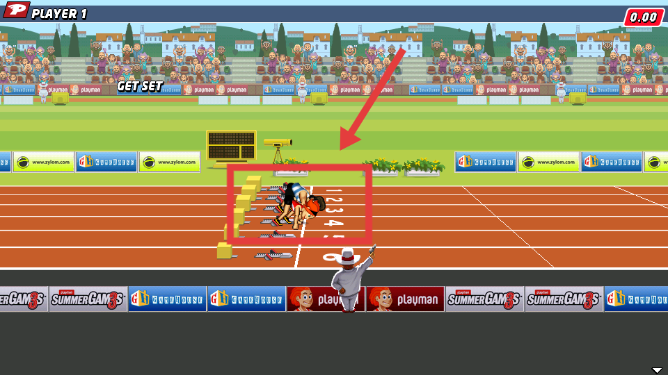 1、在跑道起跑區(qū)域操控角色做好起跑準備,等待發(fā)令信號,此時需集中注意力,與其他選手一同處于起跑姿態(tài)。