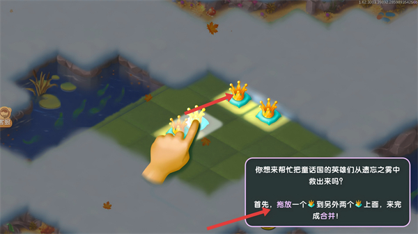1、進(jìn)入游戲可參與解救童話國(guó)英雄的任務(wù),通過拖放相同物品合并,來完成解救操作。