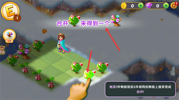 3、游戲中可拖放一件物品到另外兩件相同物品上完成合并,合并后可得到更高級(jí)的物品。