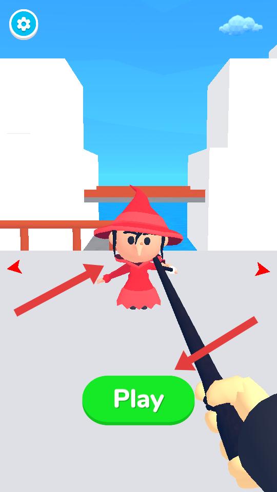2、點擊Play后,操控角色,手持魔杖,到場景里準備施展魔法,與紅色裝扮的角色互動,推進游戲進程。