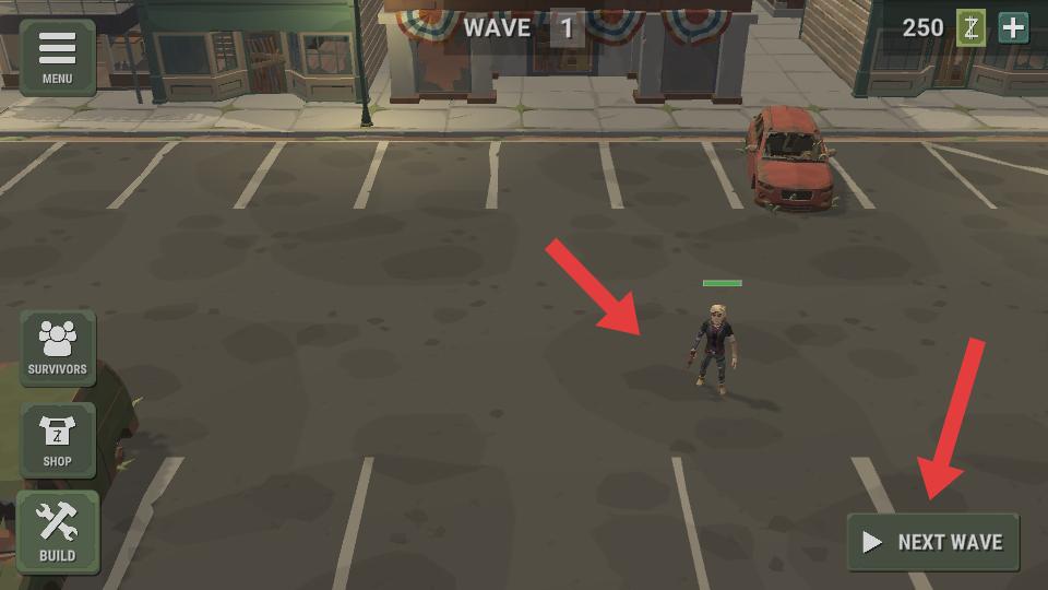 2、游戲中操控角色在場景里,可點(diǎn)擊NEXT WAVE迎接下一波敵人,還能在SHOP購物,BUILD建造,為戰(zhàn)斗做準(zhǔn)備。