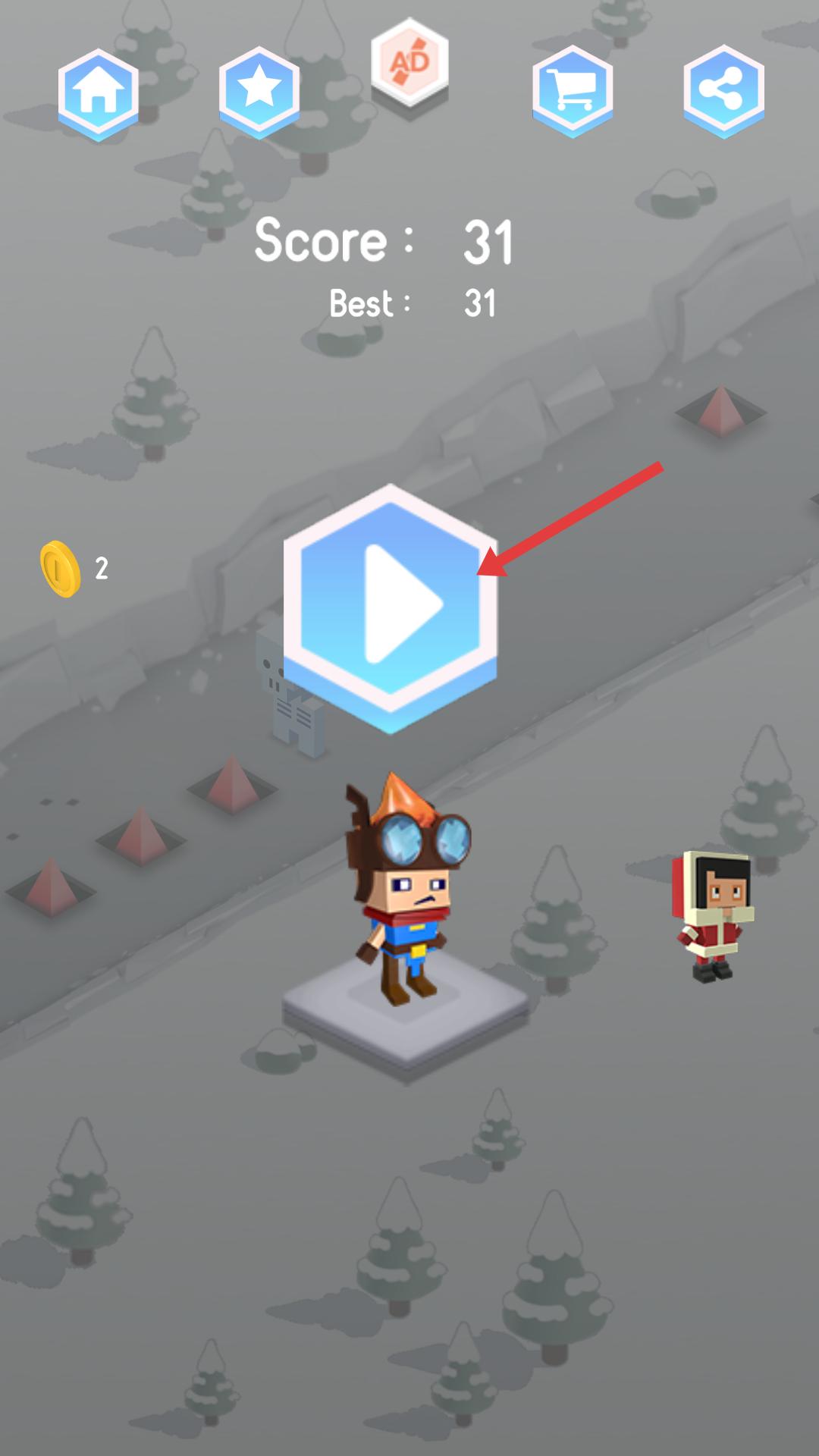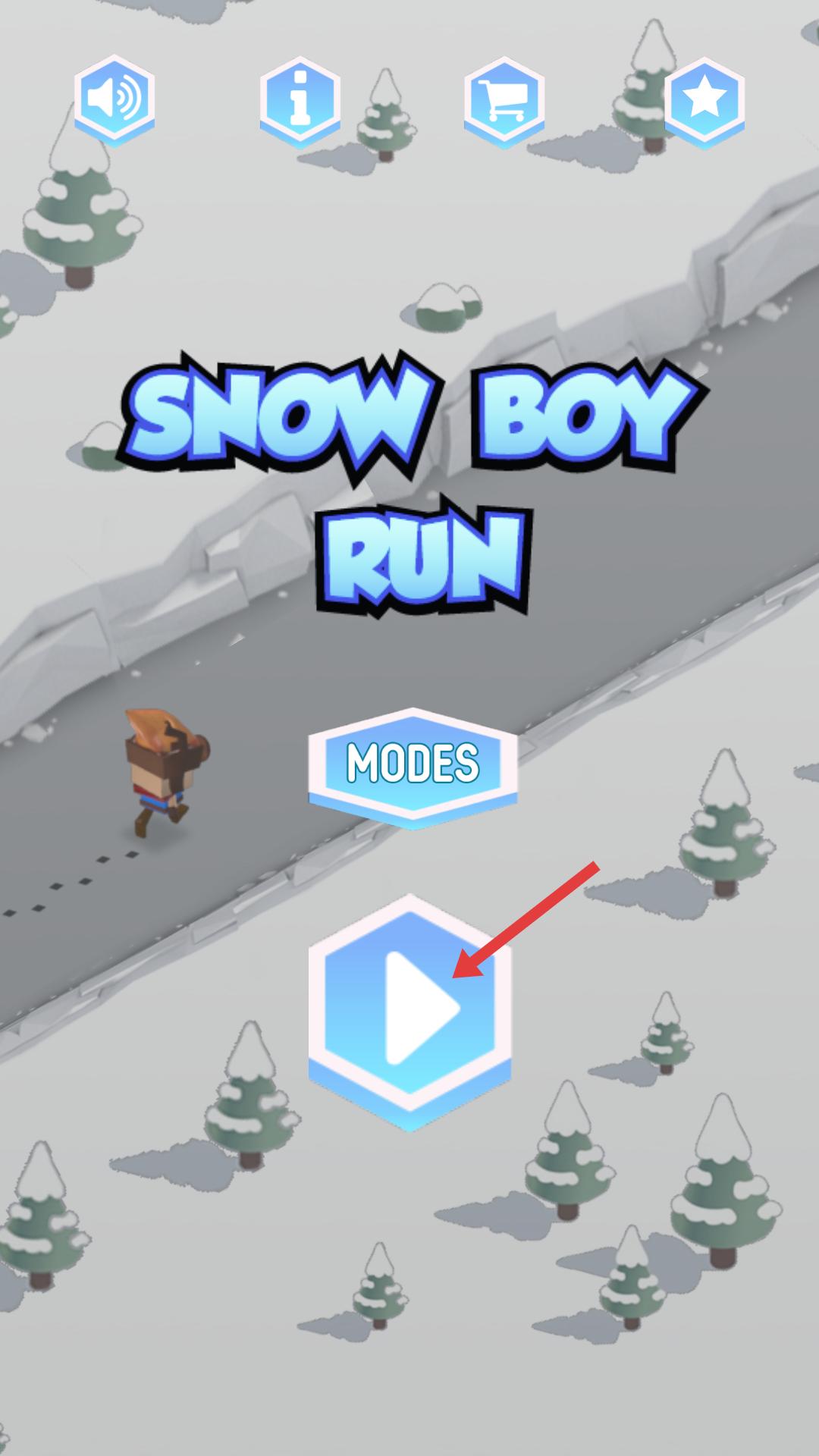 1、游戲初始界面點擊藍色的播放按鈕,進入游戲,開啟雪地奔跑挑戰(zhàn)。