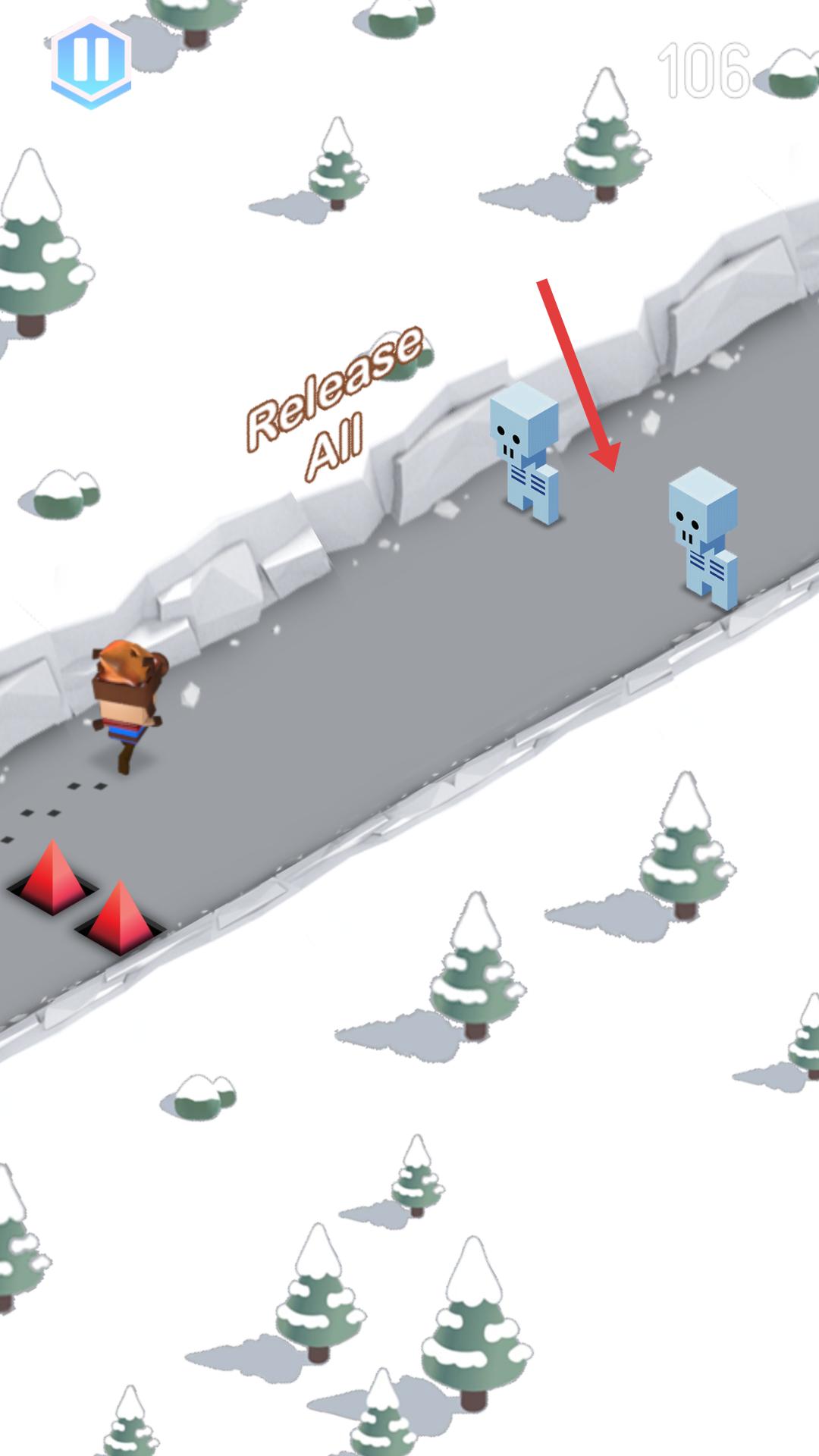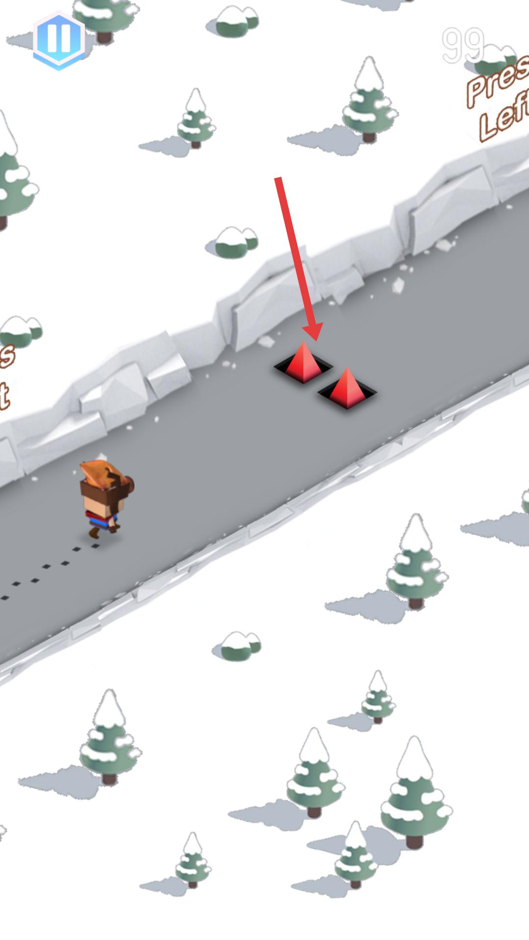 2、進入游戲后操控角色在雪地道路上奔跑,注意躲避紅色的尖刺陷阱,避免被刺傷。