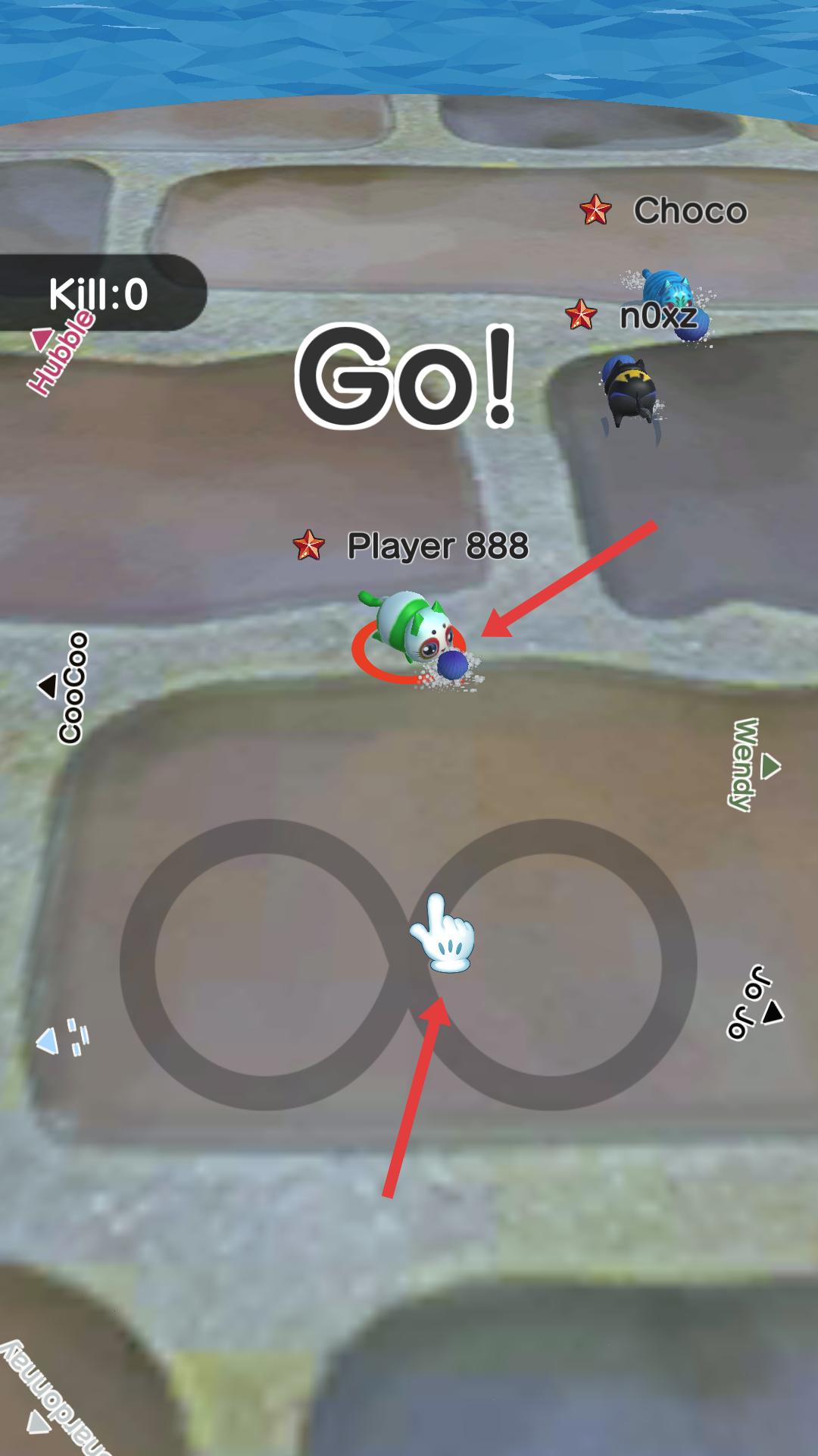 3、進(jìn)入游戲后通過滑動屏幕操控角色移動,讓藍(lán)色小球變大用于撞擊其他玩家,同時注意躲避其他玩家,避免被淘汰。