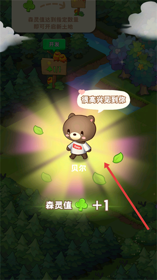 4、森靈值達(dá)到指定數(shù)量可開(kāi)啟新土地,合成動(dòng)物后會(huì)出現(xiàn)新角色,如貝爾,同時(shí)森靈值增加,推進(jìn)游戲進(jìn)程。