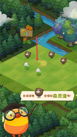 3、合成動(dòng)物會(huì)增加森靈值,按照提示合成動(dòng)物,積累森靈值,為開(kāi)啟新土地等后續(xù)操作做準(zhǔn)備。