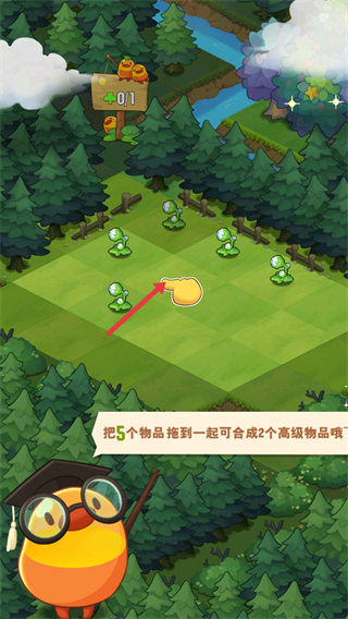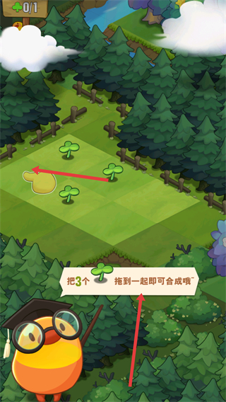 1、可將3個(gè)三葉草拖到一起合成,按照提示操作,開(kāi)啟森靈合成的第一步,逐步探索游戲玩法。