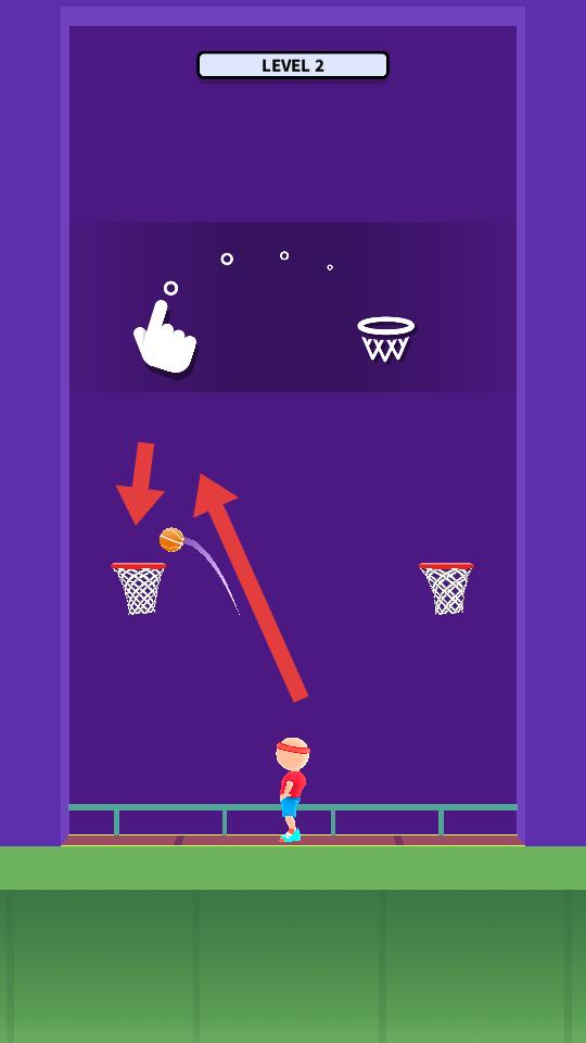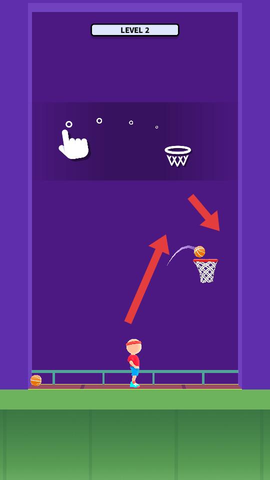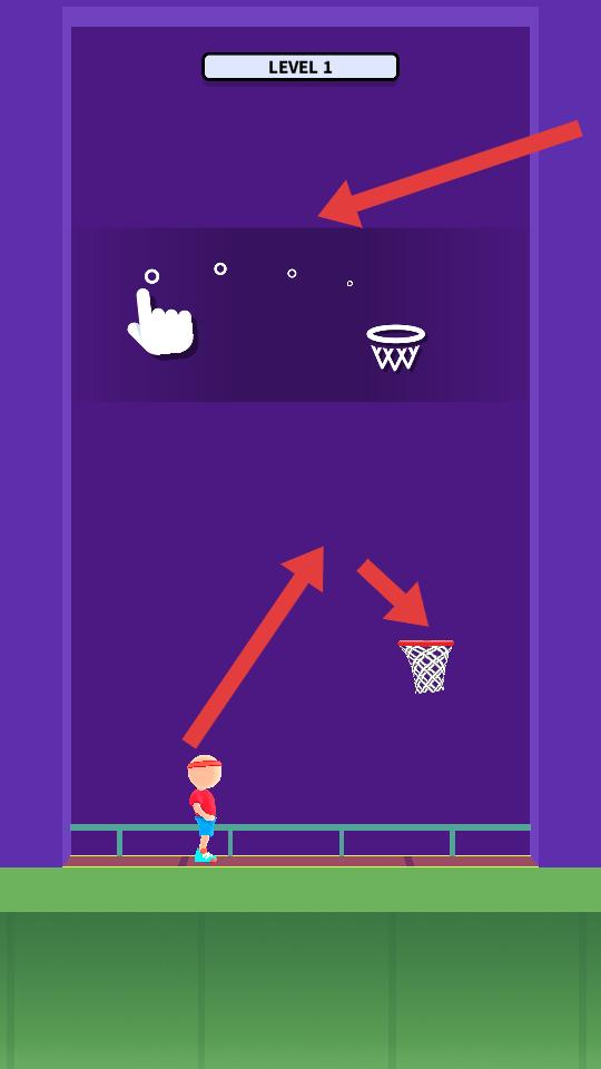 1、進(jìn)入游戲,在關(guān)卡1,按照提示,操控角色,利用手指操作,讓籃球朝著籃筐的方向運(yùn)動(dòng),嘗試投進(jìn)籃筐。