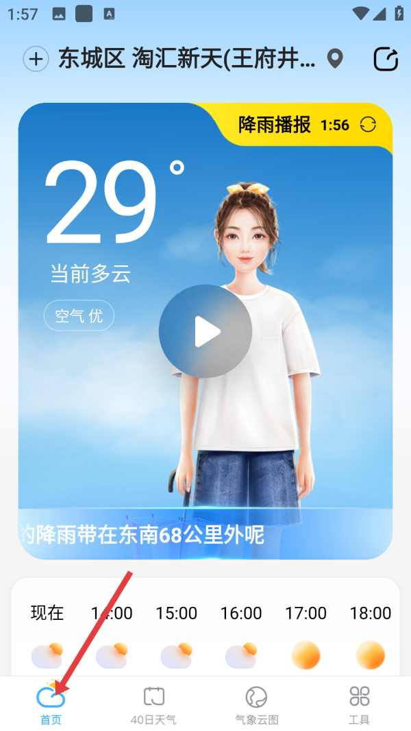 1、首頁直觀展示當(dāng)前定位天氣,下方小時(shí)級(jí)天氣預(yù)報(bào),能快速了解近期天氣變化,界面設(shè)計(jì)清新兼具美觀與實(shí)用性,方便用戶第一時(shí)間掌握天氣動(dòng)態(tài)。