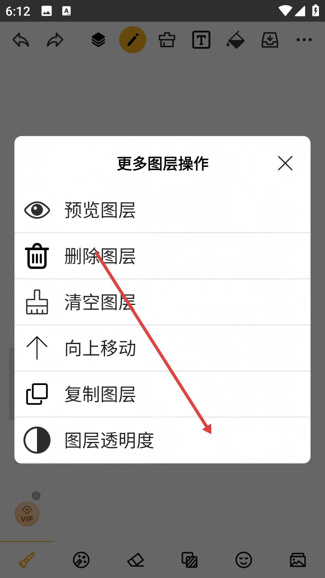 3、在更多圖層操作菜單中,可選擇圖層透明度選項,通過該功能能調(diào)整圖層的透明程度,讓創(chuàng)作中的圖層效果更符合預(yù)期。
