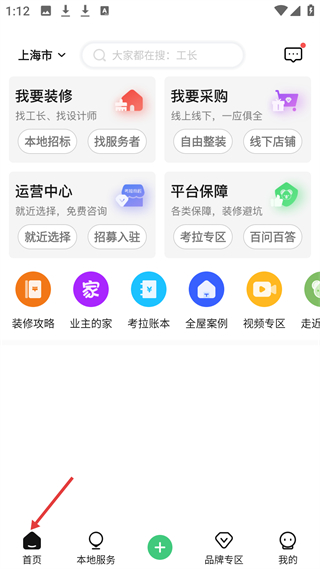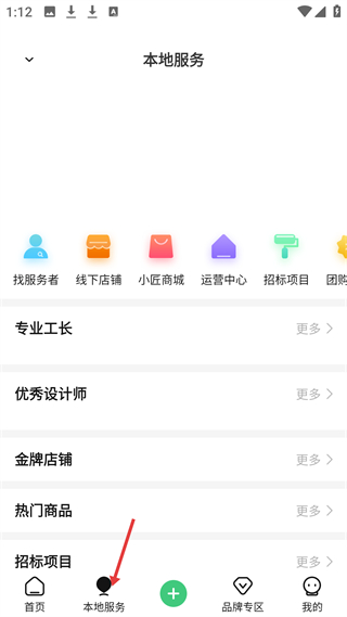3、本地服務(wù)頁(yè),有找服務(wù)者、線(xiàn)下店鋪入口,展示工長(zhǎng)、設(shè)計(jì)師資源,可參與招標(biāo)、團(tuán)購(gòu)獲裝修服務(wù)。