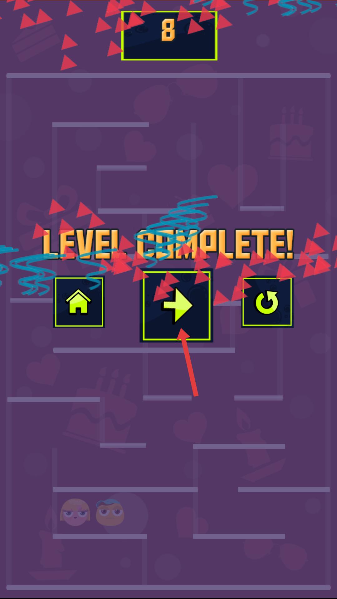 4、成功通關(guān)后,界面顯示關(guān)卡完成,點(diǎn)擊中間帶箭頭的按鈕,繼續(xù)挑戰(zhàn)下一關(guān)。