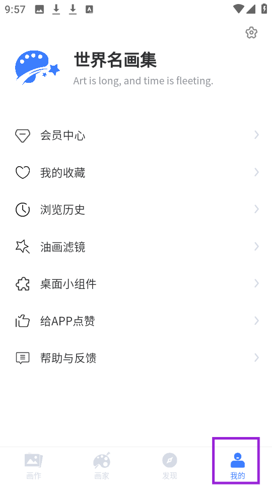 4、我的頁面涵蓋會(huì)員中心、收藏等功能,還設(shè)有油畫濾鏡等特色選項(xiàng),滿足用戶個(gè)性化的藝術(shù)體驗(yàn)與反饋需求。