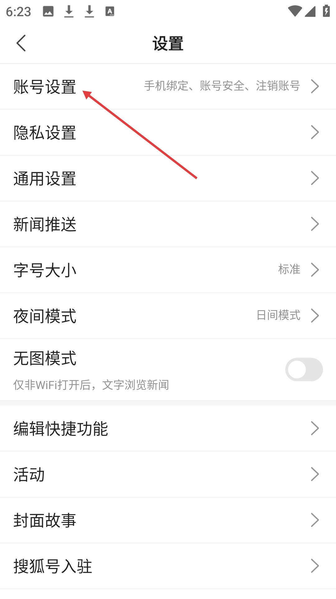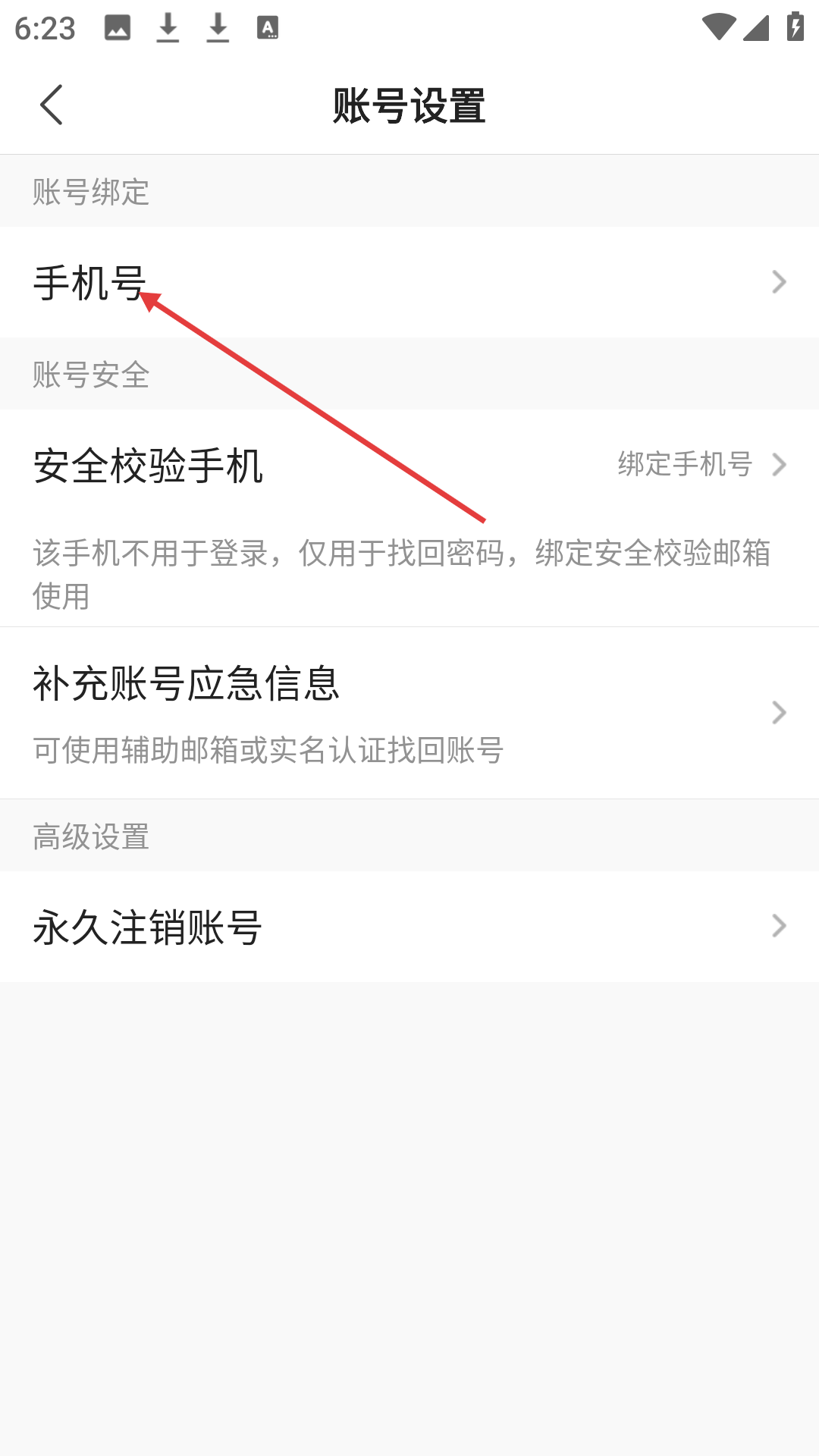 2、在設(shè)置界面中找到并點(diǎn)擊賬號(hào)設(shè)置選項(xiàng),此選項(xiàng)包含了手機(jī)綁定、賬號(hào)安全以及注銷(xiāo)賬號(hào)等與賬號(hào)相關(guān)的管理功能,點(diǎn)擊后可進(jìn)入賬號(hào)相關(guān)的設(shè)置頁(yè)面。