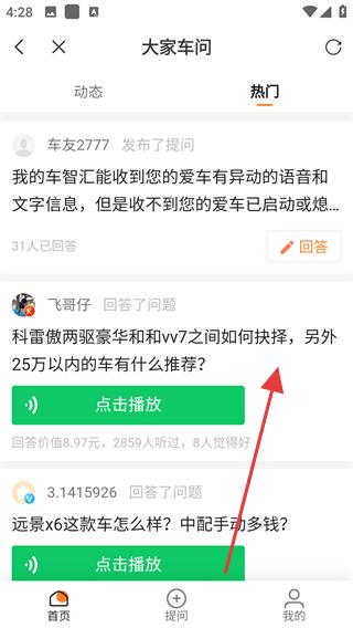 2、在熱門問(wèn)答頁(yè)面選擇科雷傲兩驅(qū)豪華和v7之間如何抉擇的問(wèn)題,點(diǎn)擊進(jìn)入回答詳情頁(yè)面。