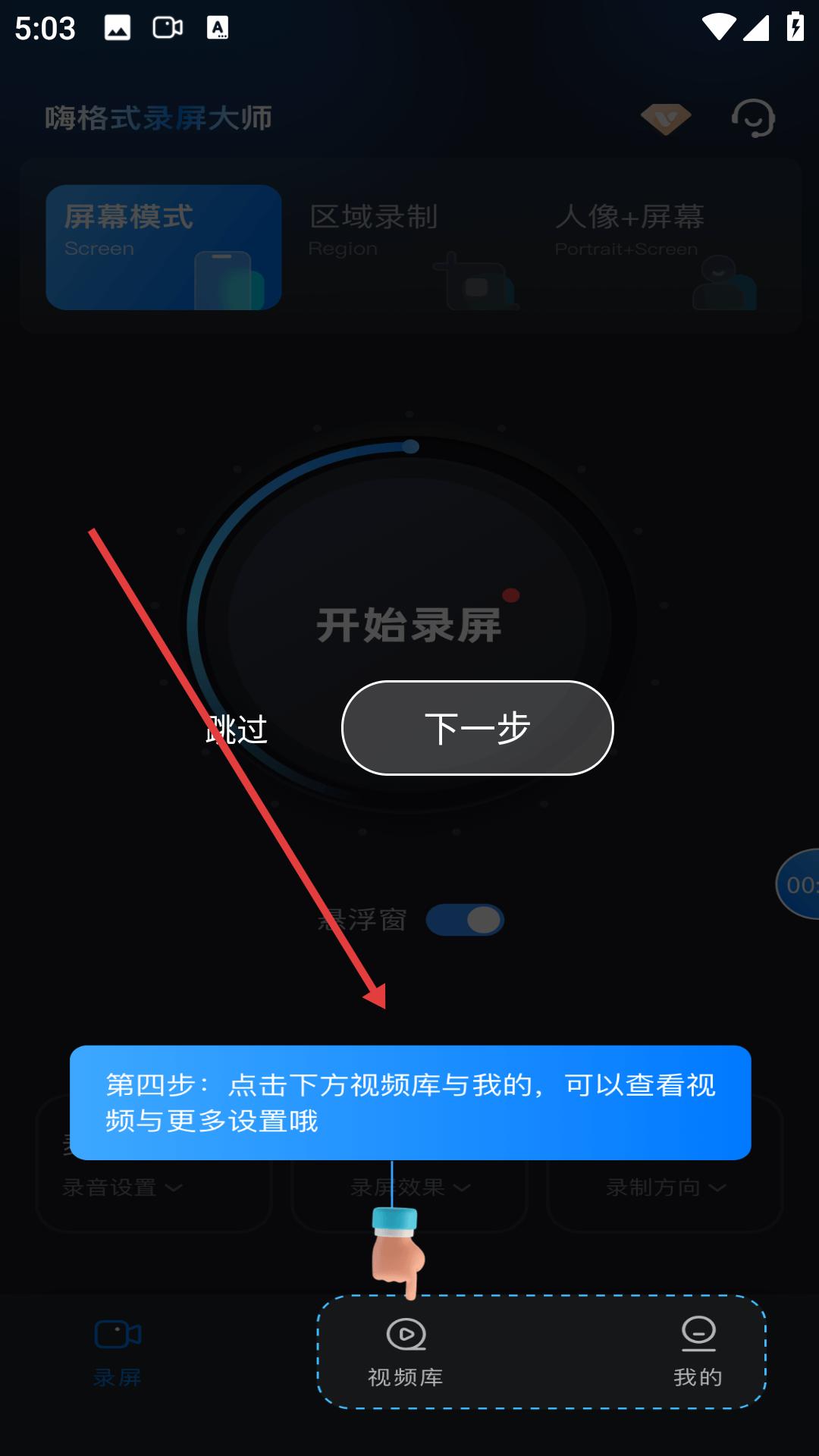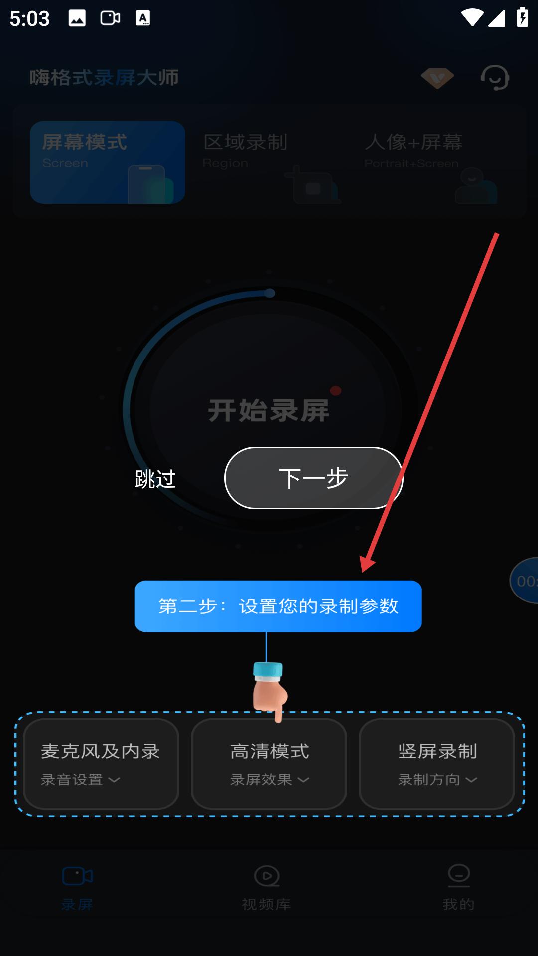 4、錄屏完成后,點(diǎn)擊頁(yè)面下方視頻庫(kù),可查看錄制好的視頻,點(diǎn)擊我的,能進(jìn)行更多相關(guān)設(shè)置,方便對(duì)錄屏內(nèi)容和軟件進(jìn)行管理。