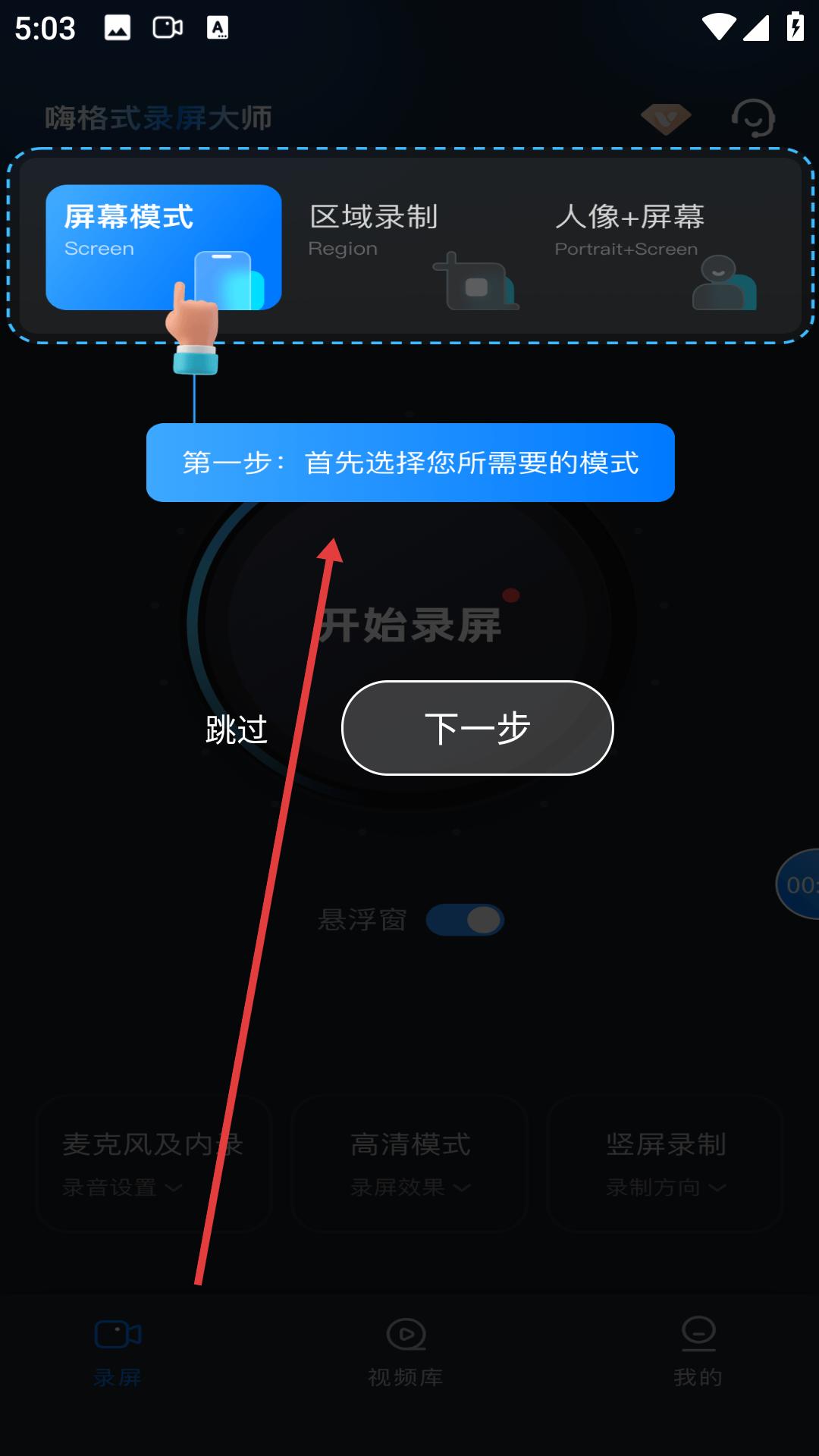 1、打開(kāi)嗨格式錄屏大師APP,進(jìn)入錄屏模式選擇頁(yè)面,看到屏幕模式、區(qū)域錄制、人像屏幕等模式,根據(jù)需求選擇所需模式,為后續(xù)錄屏做準(zhǔn)備。