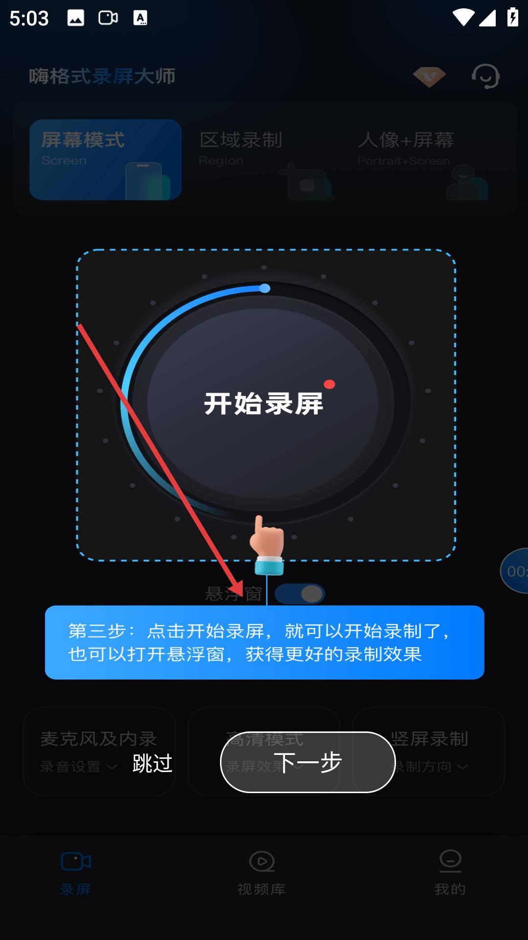 3、設(shè)置好參數(shù)后,看到開(kāi)始錄屏按鈕,點(diǎn)擊該按鈕,即可開(kāi)始錄屏,若想獲得更好錄制效果,也可打開(kāi)懸浮窗,輔助錄屏操作。
