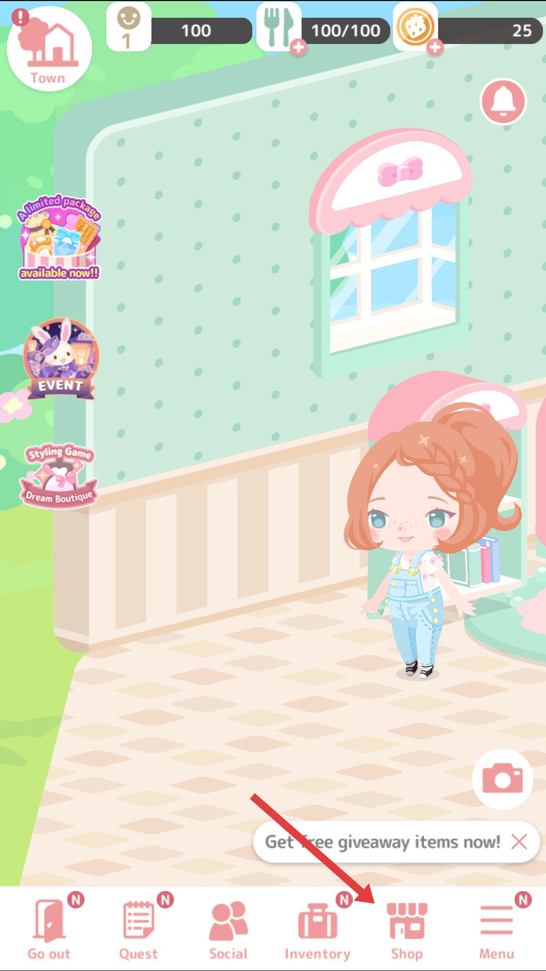 2、進(jìn)入游戲主界面后,點(diǎn)擊下方Shop按鈕,進(jìn)入商店頁(yè)面,可在商店中瀏覽、選購(gòu)各類(lèi)游戲物品。