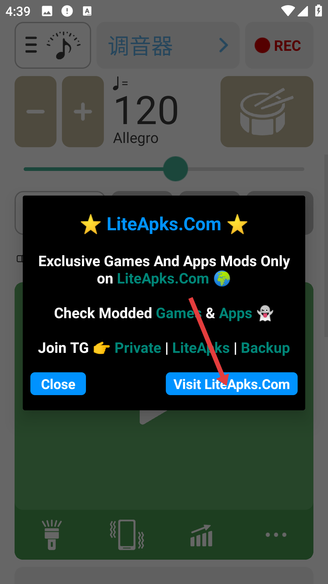 1、打開應(yīng)用可能會彈出廣告窗口,點擊廣告窗口右下角的Close按鈕將其關(guān)閉,若誤點VisitLiteApks.Com可能會跳轉(zhuǎn)至廣告頁面返回即可,從而進(jìn)入軟件主要操作界面。