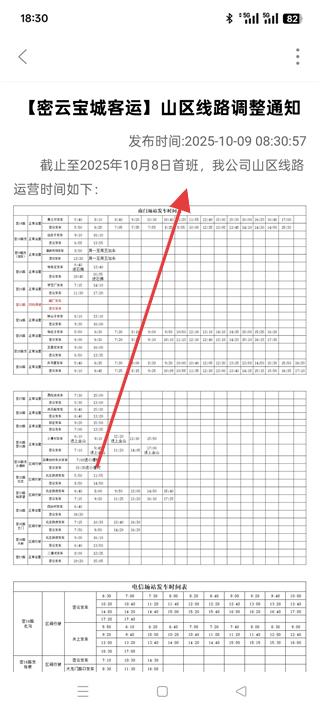 2、查看搜索結果如密云寶城客運的山區(qū)線路調(diào)整通知,了解線路的運營時間等信息,以便規(guī)劃出行。